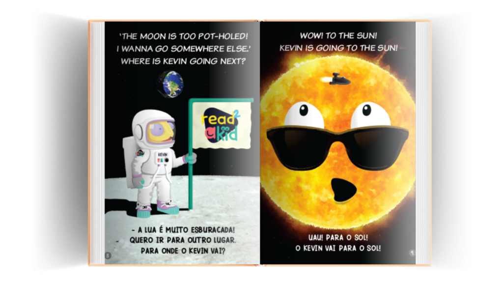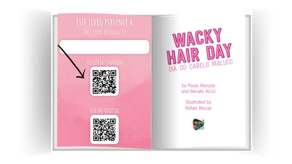 Se antes o inglês gerava dúvida e objeção por parte das famílias, com os livros do Read2akid, ele passa a ser um grande aliado! Através dos códigos QR para os áudios da história, os familiares adultos, mesmo com pouco conhecimento em inglês, conseguem ler as histórias para os pequenos, participando ativamente no cultivo do gosto por livros e pela língua adicional.