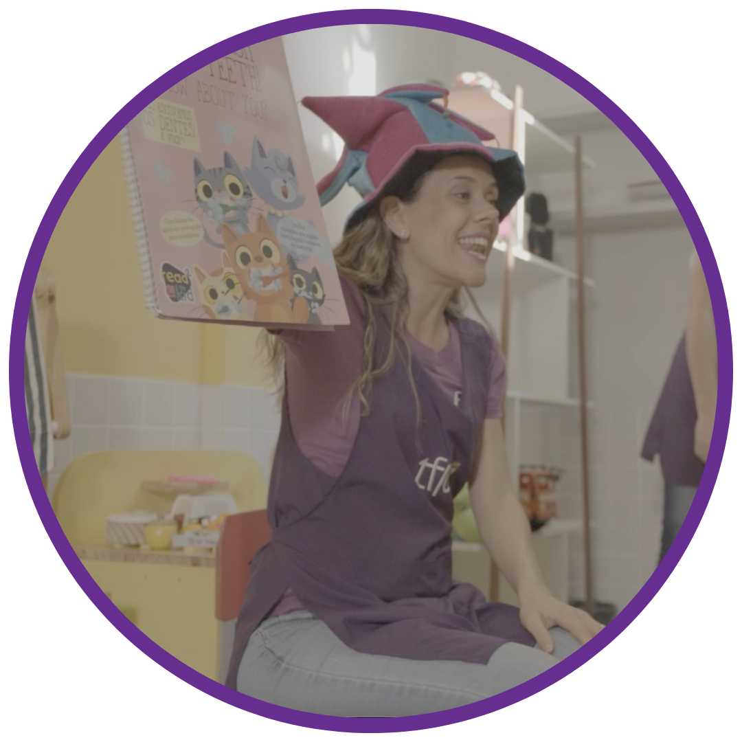 "Começamos a usar os livros do Read2akid dentro do programa bilíngue com as crianças de 2 anos, no ano seguinte, já expandimos para o infantil 3, tamanho o sucesso! As crianças se apaixonam pelas histórias e personagens e o inglês flui de forma natural."